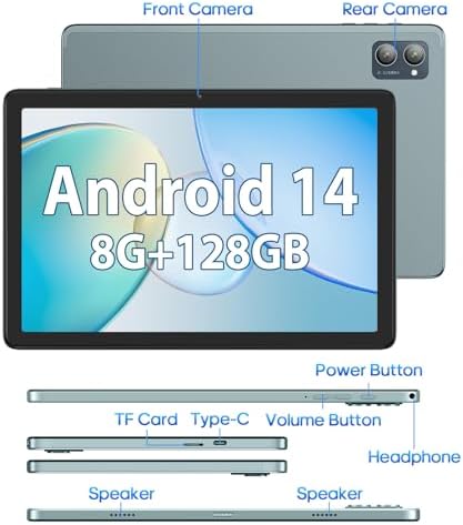 【High-Performance Tablets】10.1 inch tablet loaded with Android 14. 8GB (4GB+4GB expansion) RAM, 128GB Storage, includes a micro sd card slot which can expanded up to 512GB, you can download any app such as YouTube, Instagram, Skype, Netfix, Games and more, meet your daily requirement.