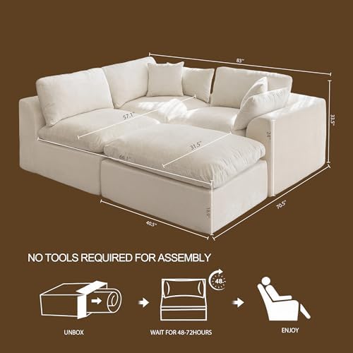 【NO ASSEMBLY REQUIRED】 Say goodbye to complicated tools or time-consuming setup. This cloud couch with ottoman arrives in 2 boxes. Simply unpack, connect the modules, and let the cushions expand naturally within 48-72 hours. Hassle-free installation means you can enjoy your new sofa almost instantly.