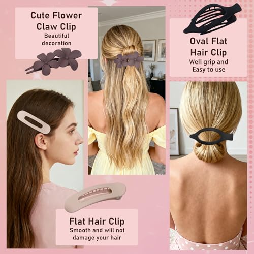【3 Styles, 12-Pack Value Set】:You will receive a versatile set of 12 clips: 4 French Concord Flat Hair Clips, 4 Flat Claw Clips, and 4 Flower Hair Pins. With a mix of minimalist and floral designs, these clips suit various occasions—daily wear, travel, work, beach days, parties, weddings, or festivals—effortlessly combining practicality and style.