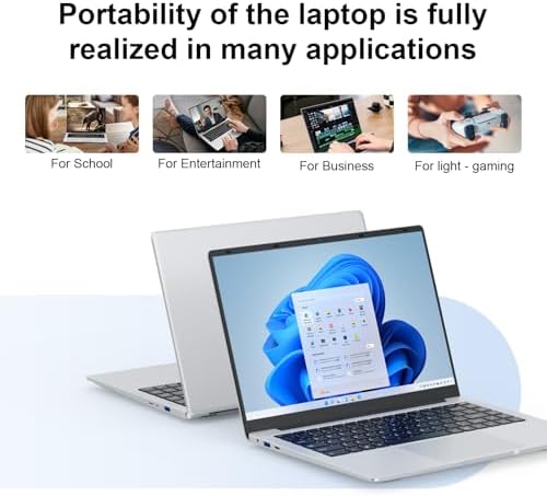 Ultimate cost-effectiveness and superior performance: This windows 11 laptop is equipped with the Celeron N4000 processor (dual core dual threading, with a base frequency of 1.1GHz and a maximum turbo frequency of 2.6GHz). Easily handle daily office and leisure activities, smoothly run business and office files, slim and lightweight body, ultimate performance.