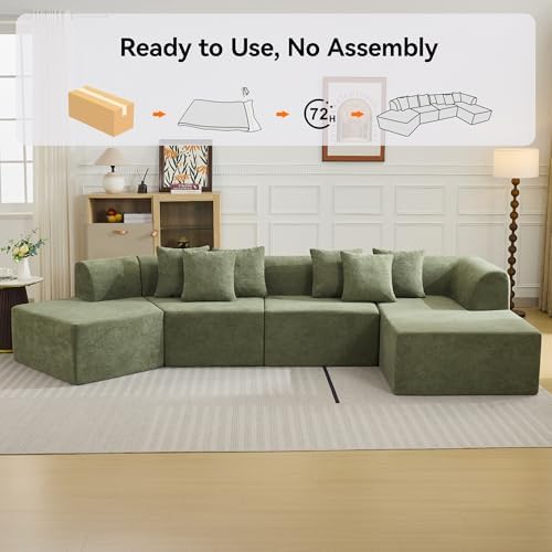 No Assembly Needed:This modular sofa comes fully compressed—no extra tools or complicated steps required. Simply open the packaging, gently pat each section, and your couch will return to its original shape within 72 hours. An ideal solution for hassle-free comfort.