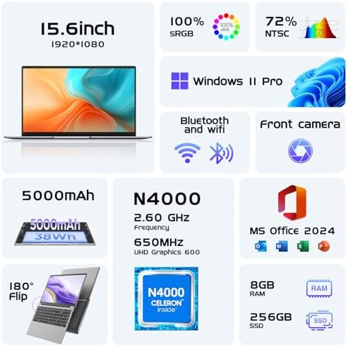 【Operating System&MS Office 365】Window 11 Pro OS, designed for productivity and creativity, Windows 11 Pro offers a seamless and intuitive user experience. It boots up in seconds and continues to stay fast over time , The laptop is pre-installed with office suite to help you easily handle various work needs.