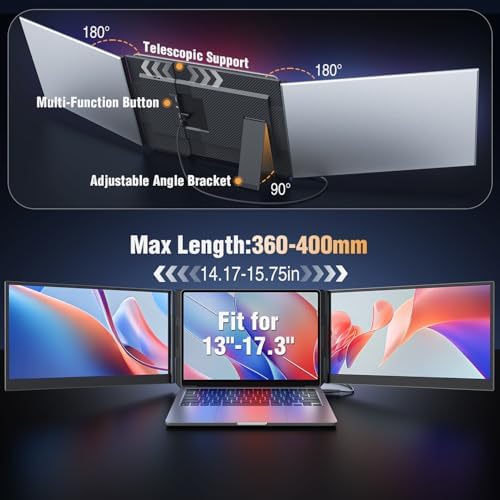 15.6’’ Triple Laptop Screen Extender, 1080P FHD Portable Dual Monitor for Laptop USB C HDMI, Plug-Play Monitor Extender for Triple Display for Mac/Windows, Fit 13”-17.3” Laptops