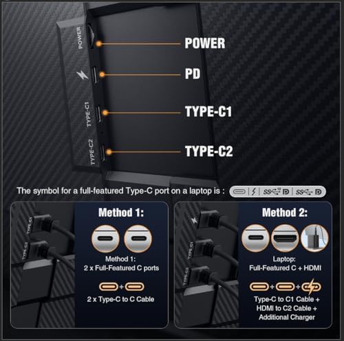 【Widely Compatible】Portable external monitor work for 13″-17.3″ laptops, compatible with Mac, Windows, Chrome and Switch. (The M1-4 Chip Macbook needs to be used with H5-T, ASIN:B0DXKQ3SGF). It requires 2 USB-C ports(DisplayPort) or 1 USB-C port and 1 HDMI port on your laptop. If no type C with DisplayPort or you are not sure whether your laptop is compatible or not, you can contact us to provide you with a solution, and we will respond within 12 hours