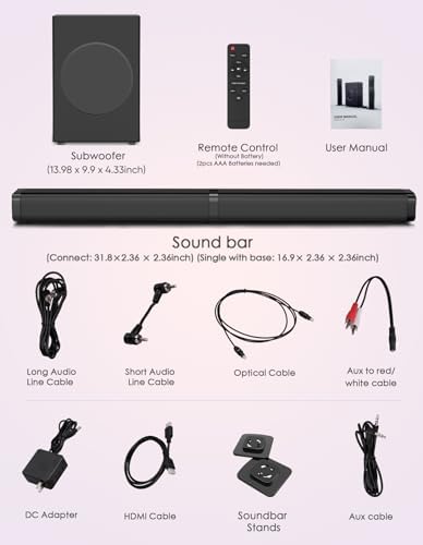 🍋PREMIUM AUDIO QUALITY: Don’t compromise on sound quality. Our 2-in-1 soundbar and subwoofer combination is built with premium audio components, ensuring clear, balanced sound across all frequencies. Hear every detail with precision and enjoy a truly immersive audio experience.