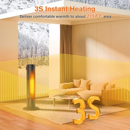 🔥【𝟮𝗦 𝗜𝗻𝘀𝘁𝗮𝗻𝘁 𝗛𝗲𝗮𝘁𝗶𝗻𝗴/𝗖𝗼𝗼𝗹𝗶𝗻𝗴】The fan will heats up quickly in 2-3S. It will absorb the surrounding cold air, through powerful vortex circulation operation, then release powerful hot air. Quickly dissipating heat or chill in a room of 161 to 215sq.ft and allowing you to get cool or warm as soon as you turn on this fan/heater. Suitable for bedroom, living room, kitchen and office.