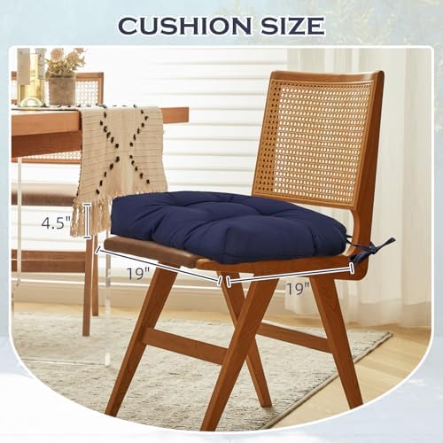 2 Pack Waterproof Outdoor Chair Cushions, Thick Tufted U-Shaped Seat Cushions with Adjustable Ties for Garden Chairs, Patio Furniture, 19x19x4.5 Inches