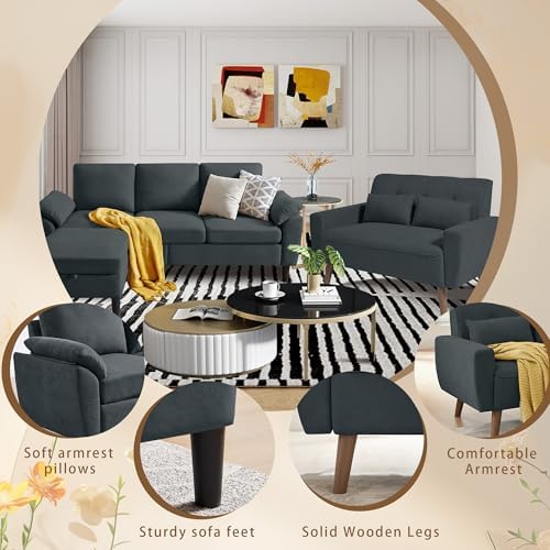 Durable &Tool Free: The seat frame of the sofa set is made of solid wood, with high-quality plastic sofa legs matched with matching screws, providing sustainable stability and support for many years. We provide easy to understand assembly manual and video for quick and easy assembly