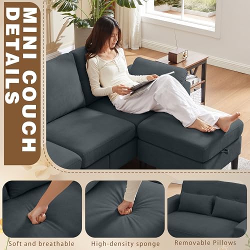 2 Pieces Sofa Set: You will get a 3-seater sectional sofa with a movable ottoman,putting convertible seating cusion to the ottoman to get a chaise. And you will also get a 2 seat loveseat sofa. Enhance your living room decor with the modern and sleek design, sectional sofa and loveseat sofa both are perfect for small spaces such as apartments, living rooms, bedrooms, and lounges.