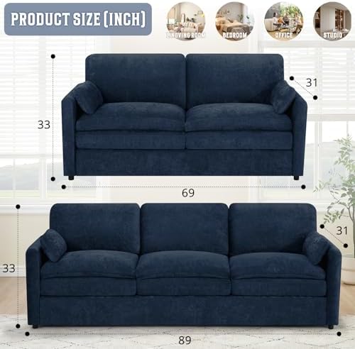 Loveseat & 3-seat Sofa Set: You can freely place the three seat sofa and the loveseat to make the room layout more flexible. Both office and living room can be well placed with this sofa set