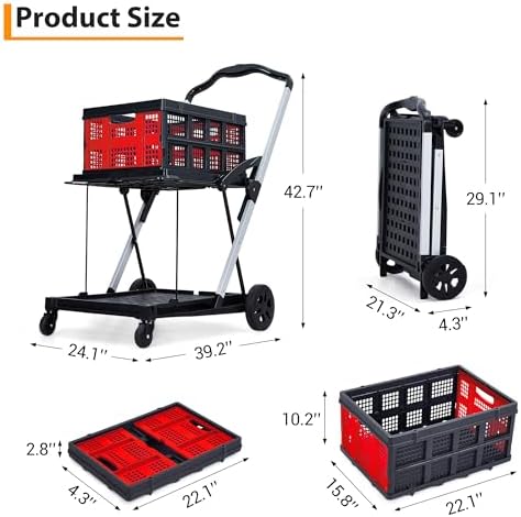 Space-Saving One-Button Fold: Fold your folding shopping cart with wheels flat to just 4.3 inches in seconds with the press of a button. Lightweight and portable, this cart is ideal for those needing compact storage at home, in the trunk, or at the office