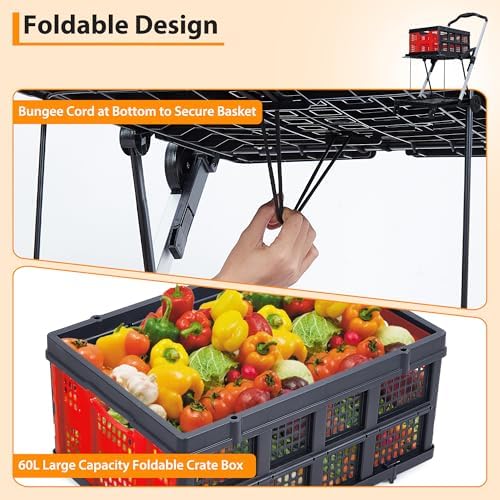 Removable Crate for Easy Organization: Featuring a detachable PP crate, this grocery cart on wheels offers flexible storage for separating produce, fragile items, or laundry. Customize your shopping and transport, making every outing more convenient