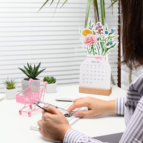 2026 Bloomy Flowers Desk Calendar Small Desk Calendar Mini Standing Floral Monthly Desktop Calendar for Home Office School Desk