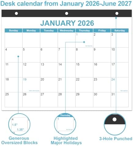 2026-2027 CALENDAR – 18 months desk calendar run from January 2026 – June 2027, the size of this 2026 calendar is 8.5″ x 11″, focus on easy and efficient planning, scheduling and tracking for a manageable life.