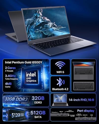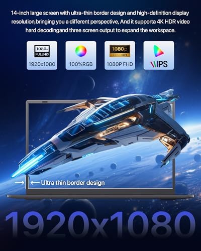 💻 A Truly Immersive Viewing Experience Dive into stunning clarity on this laptop’s 14-inch Full HD (1920×1080) display. The sleek, slim-bezel design maximizes the screen area for a more expansive view, showcasing vibrant colors and sharp details from any angle. This laptop computer is engineered for visual comfort, reducing eye strain during long streaming marathons, video conferences, or study sessions, making every viewing a pleasure.