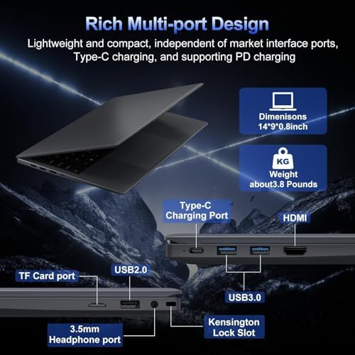 🔌 Seamless Connectivity for a Clutter-Free Workstation Embrace ultimate connectivity without the dongle dilemma. This laptop computer is equipped with a comprehensive array of ports, including Type-C, HDMI, USB 3.2, and a MicroSD slot, allowing you to connect all your essential monitors, storage, and peripherals effortlessly. With integrated high-speed Wi-Fi and advanced Bluetooth, this laptop ensures fast, stable wireless connections for all your devices at home or on the go.