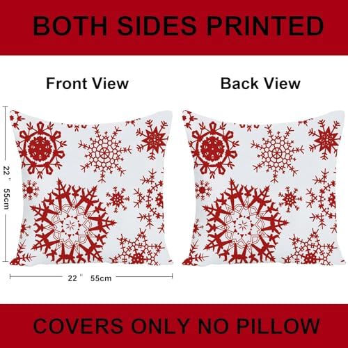 TWO SIDES DESIGN:Both sides with same let it snow printings as showed in picture. Use 22×22 Christmas pillow covers for both indoors&outdoors decoration,living room,office,bedroom,party,wedding,patio,car,coffee shops, etc.