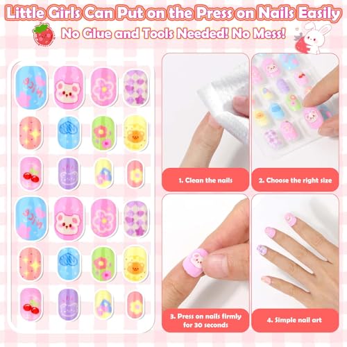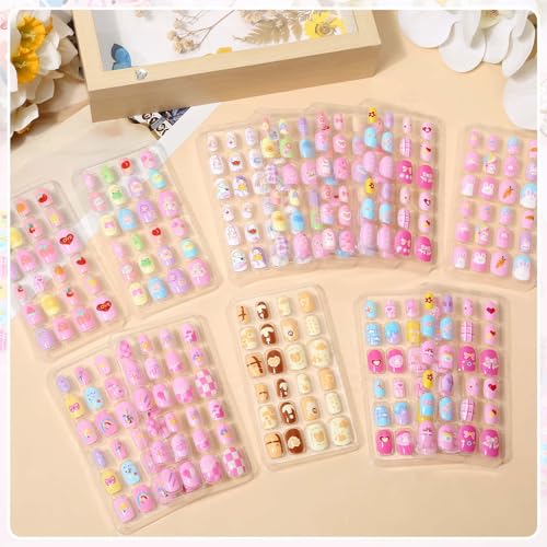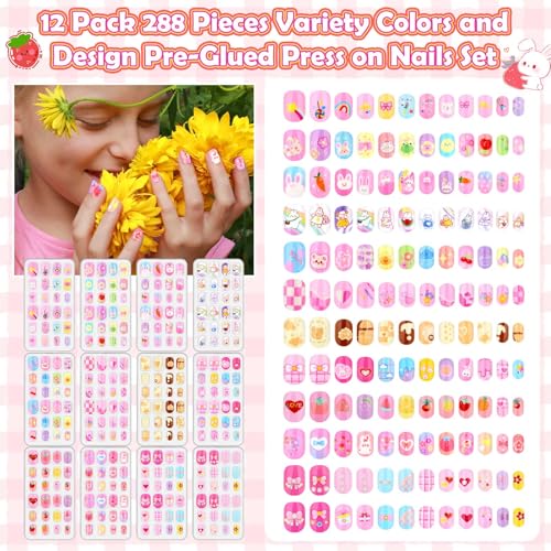 Cute Press ons for Girl Nails – Our girls glue on nails are designed with 12 different adorable patterns and bright colors. Easy for kids to DIY various nail art styles every day to meet their different dress needs