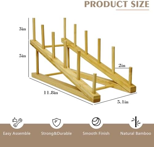 【Book Stands for Display】: This package includes 3 bamboo book stands,Size:11.8 x 8 x 5 inches, Each slot of the book rack is 2 inches wide it is easy to display your articles