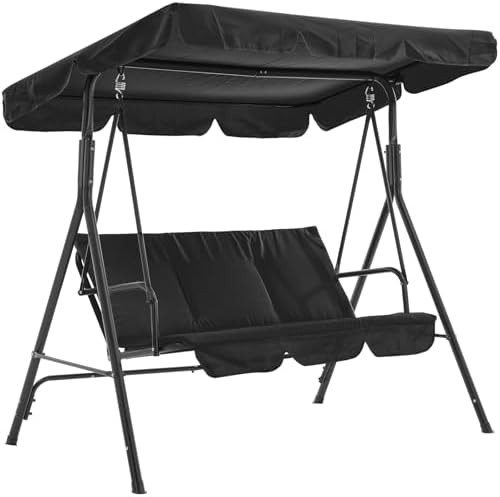 【Weatherproof Build】This 3-seat canopy patio swing features a frame coated in premium powder-coated steel. This tough, long-lasting material is highly resistant to a range of weather conditions—from heavy rain to intense sunlight—ensuring the swing remains in excellent condition for years to come, with no rust or corrosion issues.