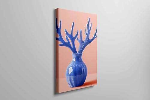 Artistic Ceramic Handicraft Motifs – Features handpainted-style elk decor, long horns, and a striking blue vase against a soft pink backdrop, merging trippy aesthetics with timeless ceramic artistry for unique wall pictures