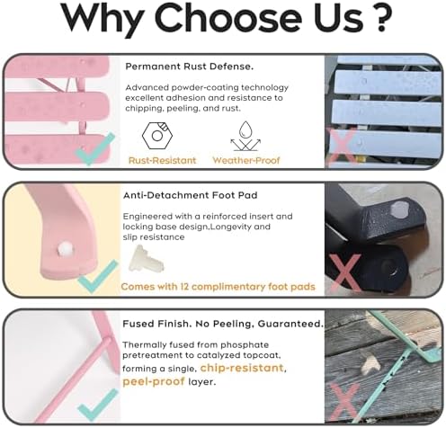 【RUGGED & DURABLE】:Embrace hassle-free maintenance with our rust-proof and durable outdoor furniture set. Widely used outdoors, the outdoor table and chairs withstands the elements, making it an ideal choice for any patio or garden.Equipped with plastic feet,protect floors from slipping and cancel out noise.