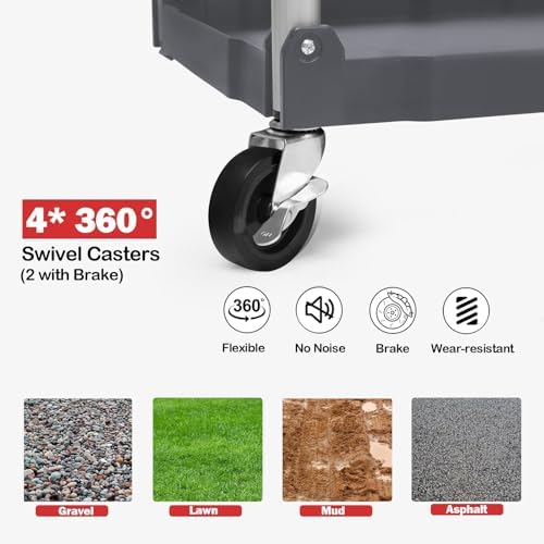 【360°Universal Wheels + Locking Function】The cart is equipped with 4 universal universal wheels, which support 360° flexible steering and smooth movement without stagnation. 2 foot brakes with brakes are designed to lock firmly in any position, making the task of fetching and carrying things more efficient and hassle-free.