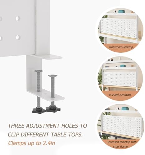 *Clip-on design: No need to punch holes on the desktop, can be directly clipped to the edge of the table, easy to install and will not cause damage to the desktop, dual C-clamps with dual screws secure to desks with thickness ranging from 0.4-2.5 inches