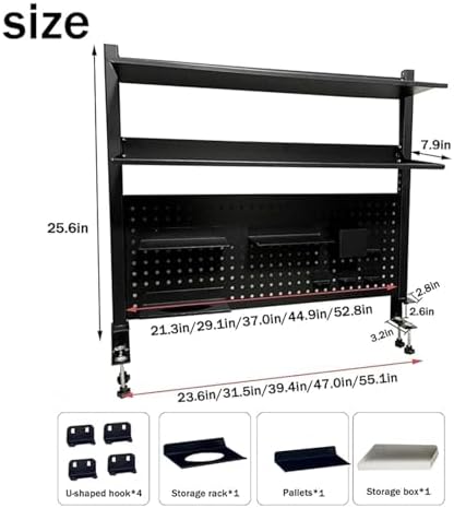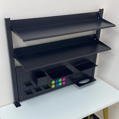 *Free combination design: The upper and lower positions of the pegboard and two shelves can be adjusted according to your needs, and they can be easily disassembled and reassembled.Each shelf supports up to 36 lbs