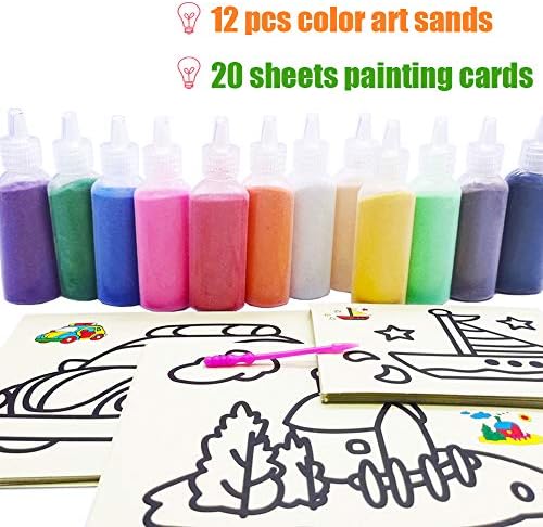 Colored sand is the perfect medium for craft projects,which can develop imagination by matching colors according to the patterns of the sand art picture cards.