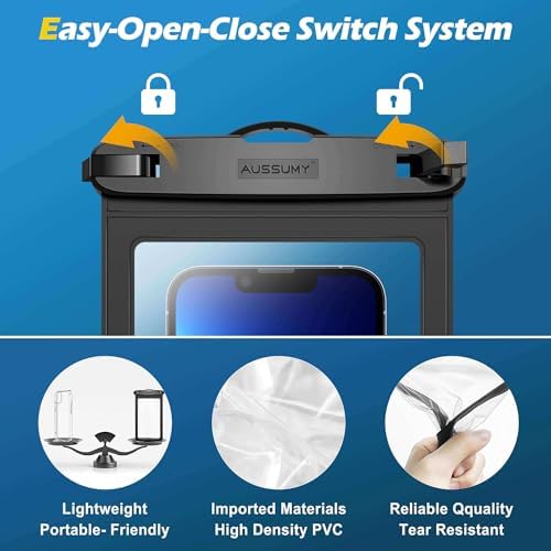【Super Sensitive Touch】 Made with a transparent PVC material that offers a crystal clear display gives you excellent touch screen performance. Allowing you to text messages, call, watch videos, face recognition, and take selfies without taking out your phone from the pouch. When in water, recommended using the mobile hot key or Volume Buttons to operate. ABS materials snap and lock ensure durable use with scratch resistance and wear resistance.【Tips:NOT SUPPORT Touch ID】