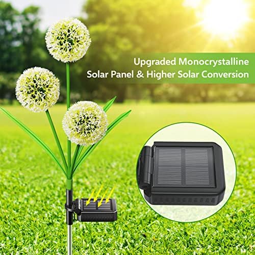 Upgraded 4 Pack Outdoor Solar Lights with 144 LED: Our new solar outdoor garden lights are built with multi-color 144 LED totally, which can bring colorful light at night, more bright and charming. Like real dandelions flowers, realistic stems and leaves in your garden, our solar lights outdoor decorative will add a touch of elegance to your yard and make every outdoor moment truly memorable