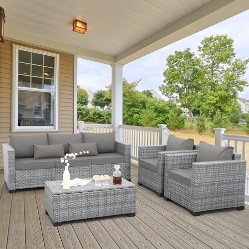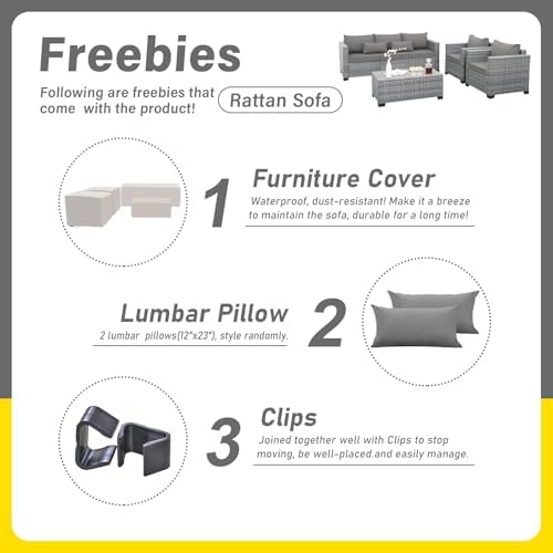 Comfortable and Non-slip: seat cushions(4 inches) with high resilience sponge and bottom array anti-slip dotted fabric, match up plump back cushions with water-resistant, color retention fabric covers for lasting appeal with outdoor patio furniture set; the sofa feet are designed twice as high as our original set, more user-friendly