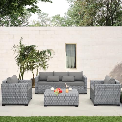 Quality and Durable: founded atop a strong powder-coated steel frame, wrapped in dense all-weather wicker with woven details closely in a black finish with stereo arcuate stripes for a tastefully textured, cozy look, makes outdoor furniture set 6 pieces exceptionally durable