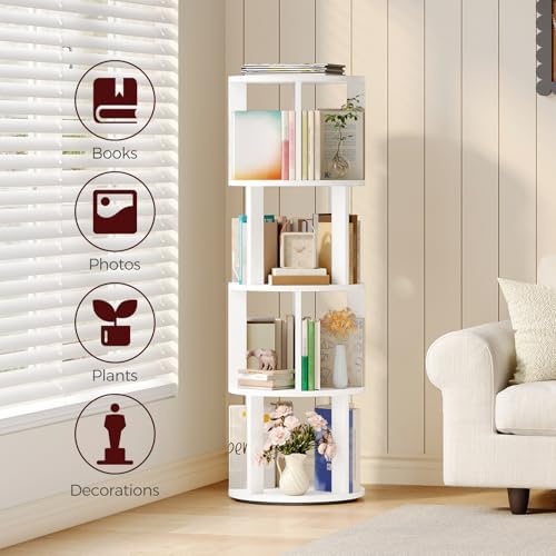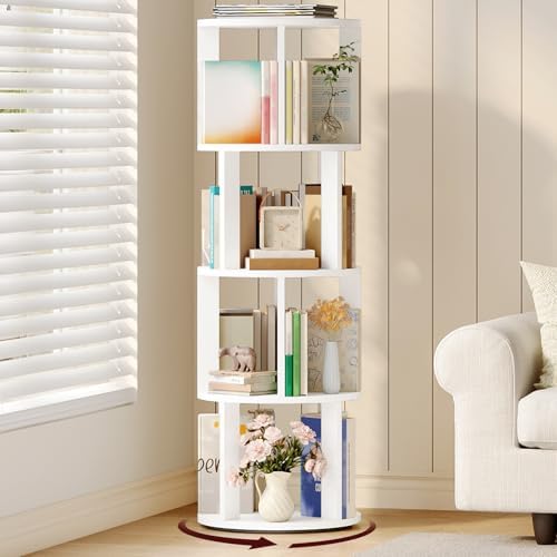 Sturdiness & Durability: Made from high-quality panels, this rotating bookshelf features a smooth, easy-to-clean surface. Supports up to 44 lb per shelf, ensuring secure and reliable storage