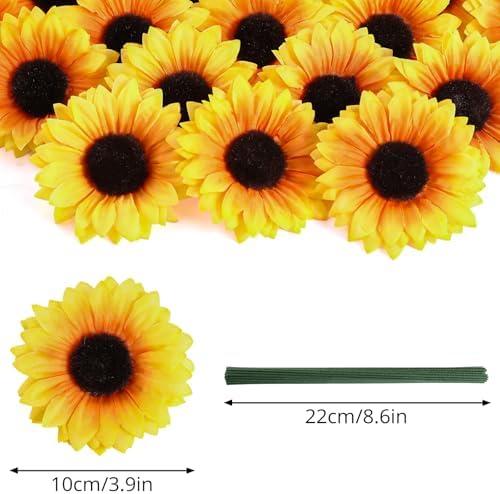 Fake sunflower head be used of bright yellow, the bright color will add vitality to your life. You can decorate sunflowers on the christmas tree, garland, wedding scene, headbands, hats, bows, hair clips, clothes, cards, crafts, wedding cakes, baby shower decor, parties, photography props.