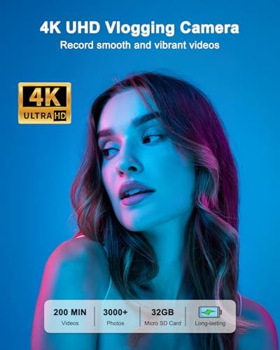 180° FLIP SCREEN & VLOGGING CAMERA – This 4K vlogging camera for YouTube with a 3-inch 180° flip screen and built-in microphone, makes it convenient to see exactly what you’re capturing, easy to check and adjust pose or expression on the screen, quality camera for vlogging, selfies, and content creators. The 4K camera even works as a webcam, perfect for live streaming, video chats on YouTube, Facebook, or TikTok.