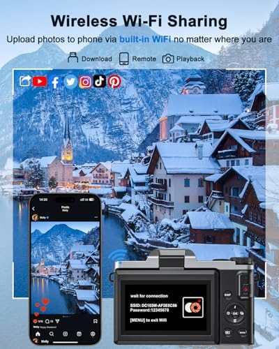64MP PHOTO & 4K VIDEO & AUTOFOCUS – The 4K digital cameras for Photography capture stunning 64MP photos with sharp details and vibrant colors, record smooth Ultra HD 4K videos. Autofocus and anti-shake feature ensure your photos are always crisp and in focus, blur-free, just fun and confidence in every shoot. The easy-to-use point and shoot digital camera offers intuitive system settings and a user-friendly interface, ideal gift for kids, teens, students, adult, seniors, amateurs, and beginners.