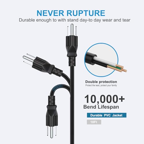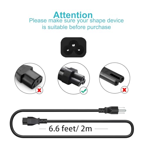 4. High-quality Assurance: adopt thickened PVC material, pass 1000+ bending test, the cable has tensile resistance, safety, long service life. Compact and portable design, convenient for travelers and most people to take it anytime, anywhere. UNIVERSAL COMPATIBILITY: 3 Prong power cord IEC C5 connector works with most power bricks for laptops/notebooks, monitors, scanners, printers, and more | Replacement laptop charger head power supply cable/cord.