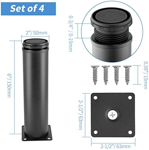 *Durable Quality – Black adjustable feet are constructed of thickened stainless steel pipe wall, square steel plate and ABS base for enhanced load-bearing, durability and reduced noise and wear.
