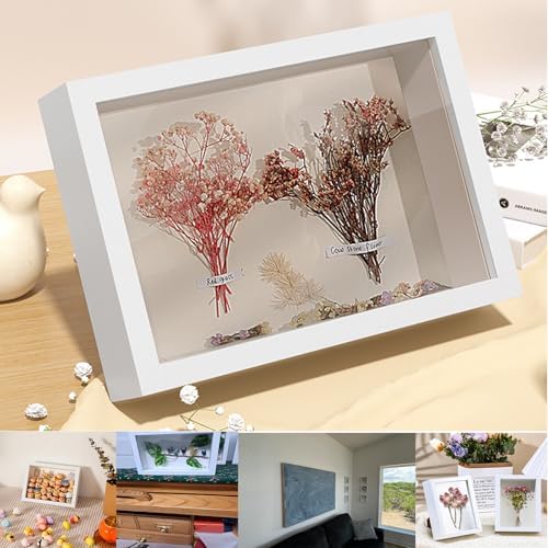 Material: The white shadow box is made of a thick medium density fiberboard frame and back panel, with a glass front that is not fragile and can protect the internal items from being tidy. Shadow box for storing and displaying souvenirs