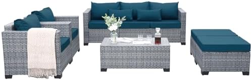 Quality and Durable: founded atop a strong powder-coated steel frame, wrapped in dense all-weather wicker with woven details closely in a black finish with stereo arcuate stripes for a tastefully textured, cozy look, makes outdoor furniture set 6 pieces exceptionally durable