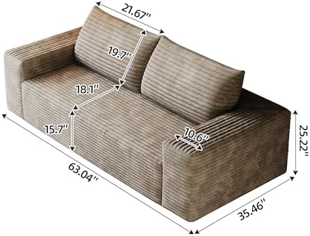 Eafurn 63″ Plush Corduroy Upholstered Sofa Couch , Loveseat Couch Lounger Soga , Cloud Sofa Couch for Living Room
