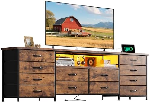 Versatile Charging & Convenient Design:This TV stand dresser comes with 2 ports and 2 power outlets, serving as a practical charging station. The convenient plug – in options keep your devices powered up while you enjoy entertainment. As a family entertainment center, say goodbye to battery anxiety and fully immerse yourself in the joyous atmosphere.