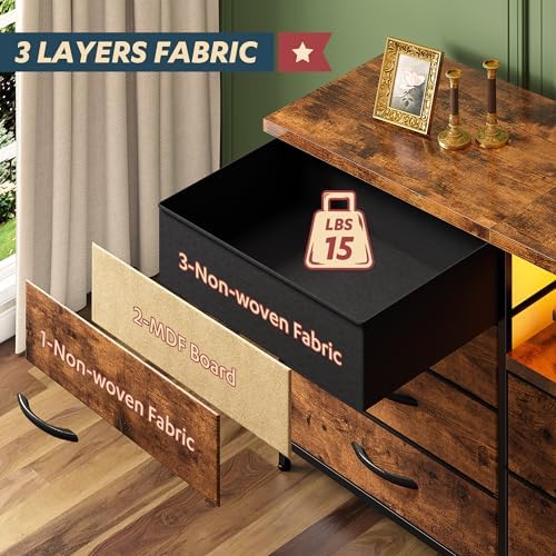 Ambient Lighting & Remote Control:Transform your room with 7 – color dynamic LED lights. Equipped with a 20 – meter remote control, this dresser for bedroom creates a captivating atmosphere, standing out in any space. Whether you prefer warm, cozy tones or vibrant, energetic colors, it caters to all your needs, making every night full of surprises.