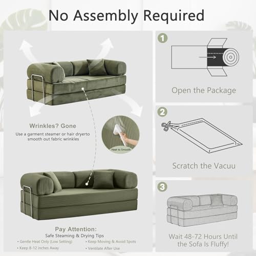 【No Assembly Required】Forget tools and complicated setup. This floor sofa arrives fully assembled. Just unbox, let it expand naturally for 72 hours, and enjoy instant comfort and style with zero hassle.