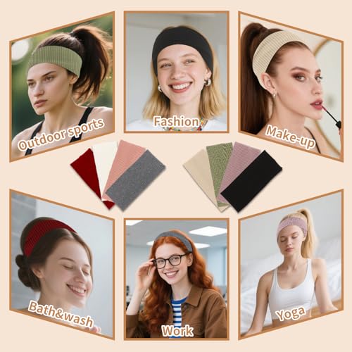 Versatile Occasions: These Headbands are essential hair accessory for travel, dating, work, photoshoots, yoga, skincare, makeup or face wash. 8 colors of the hairband match different outfits for any scenario.