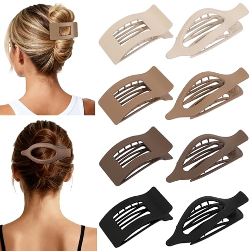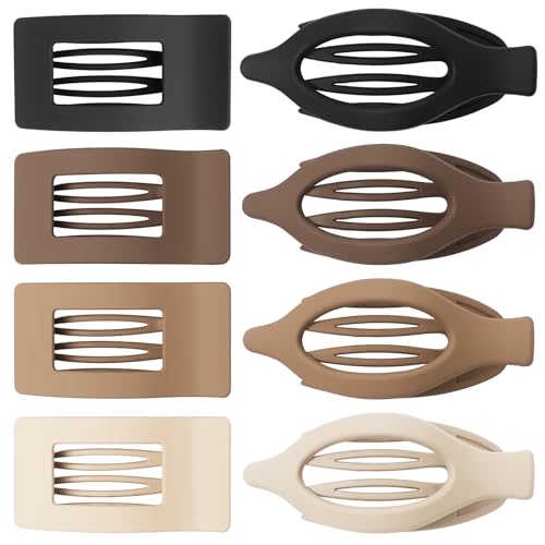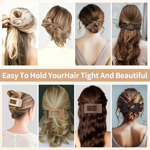 2 Styles: This hair clip comes in two classic styles, oval flat hair clips(4.9 x 1.9 Inch) and square flat hair claw clips(3.9 x 1.25 Inch) for women. They all have different colors. The simple curved oval and plain square design meet the needs of minimalist.