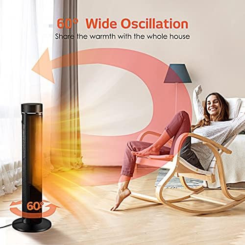 Fast & Full-Body Heating: Standing at 36 inches tall with the air outlet positioned at the top, this ceramic tower heater delivers warmth that flows across your whole body—not just your feet or knees. Equipped with a 1500W PTC heating panel and 60° oscillation, it spreads heat quickly and evenly, making it ideal for bedrooms, offices, and living rooms.