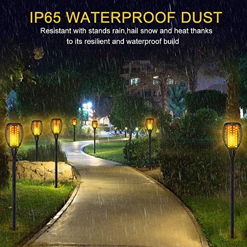 🔥AMAZING FLICKERING FLAMES SOLAR LIGHTS : This solar flame torch light is a safe alternative to the real “flames”. 96 LEDs in the light cast a safe, soft, mood-enhancing glow,provide a perfect campfire atmosphere for your patio, backyard, deck decor ,garden,party, BBQ and camping.